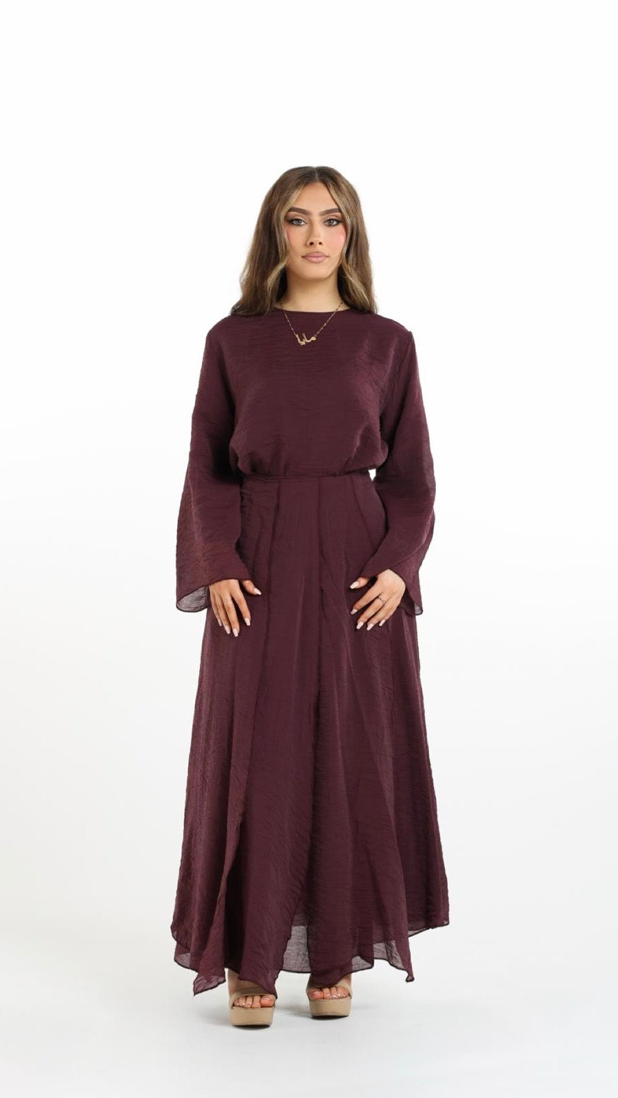 Step into effortless elegance with this stunning two-piece set, crafted from a lightweight, flowy fabric that feels soft and airy. Available in Light Yellow and Deep Burgundy, this set features a long, wide skirt paired with a relaxed long-sleeve top — creating a look that’s both graceful and timless.