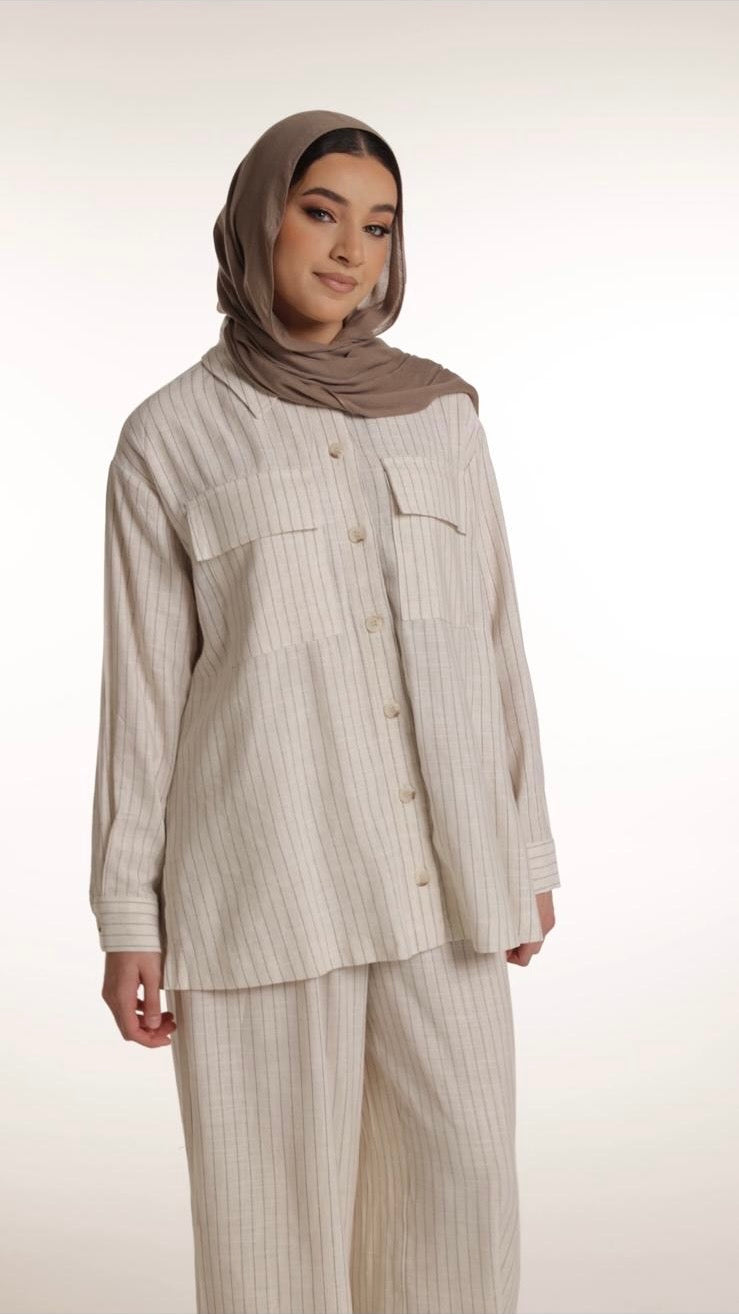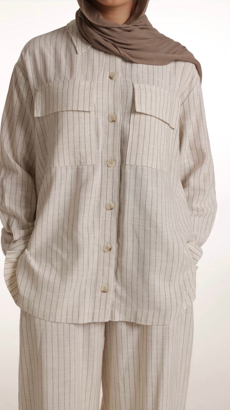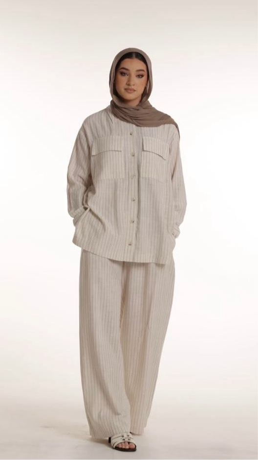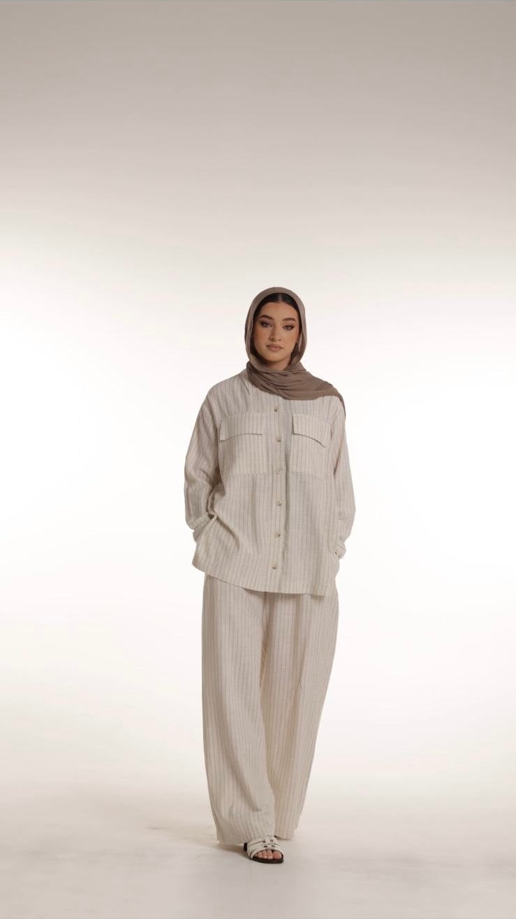 A stylish and comfortable set featuring a relaxed-fit shirt and matching trousers made from high-quality fabric with subtle stripes for a refined yet effortless look. Both pieces can be worn together for a coordinated outfit or styled separately with ease. The lightweight and soft material makes it perfect for warm and mild weather.