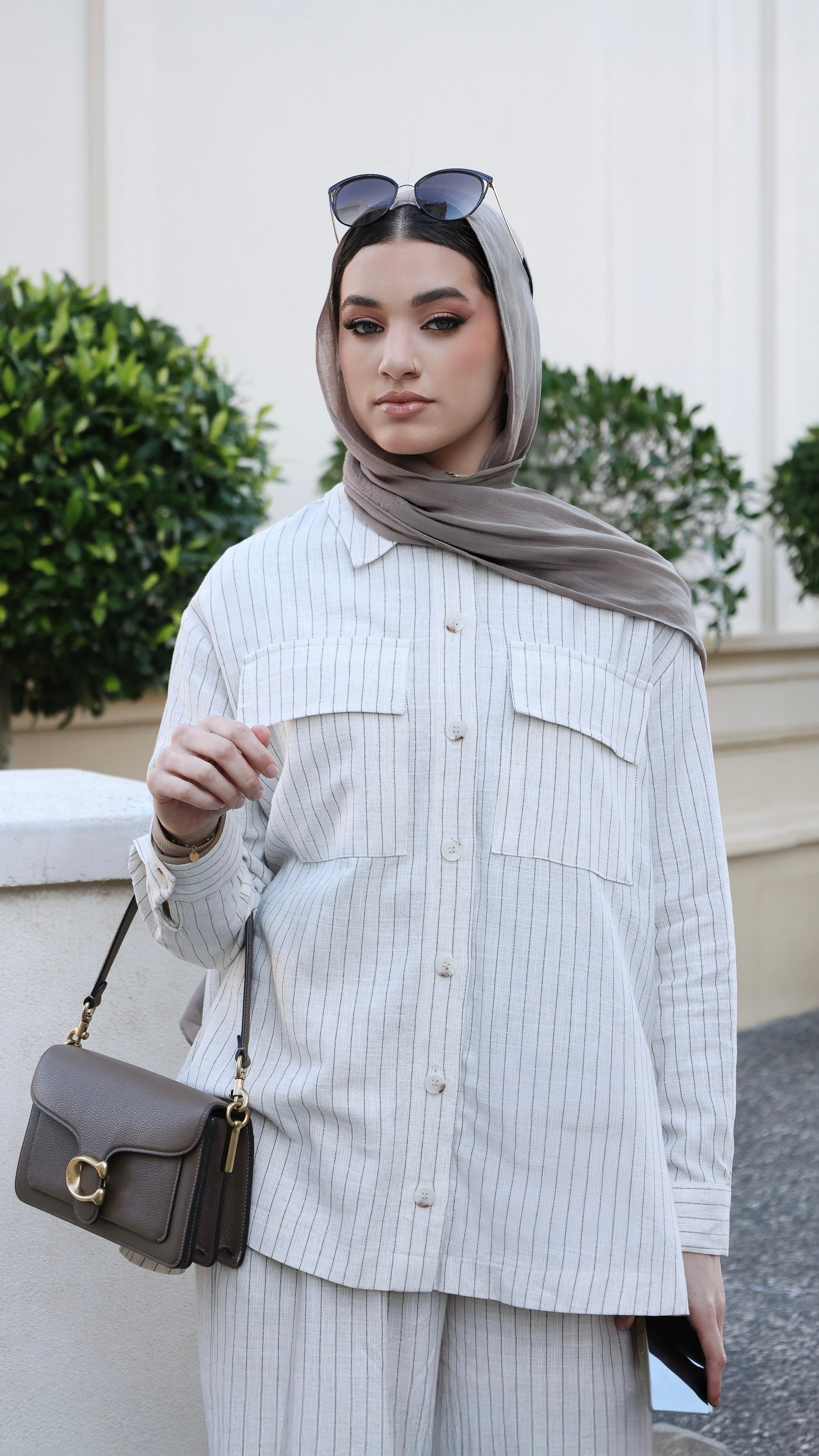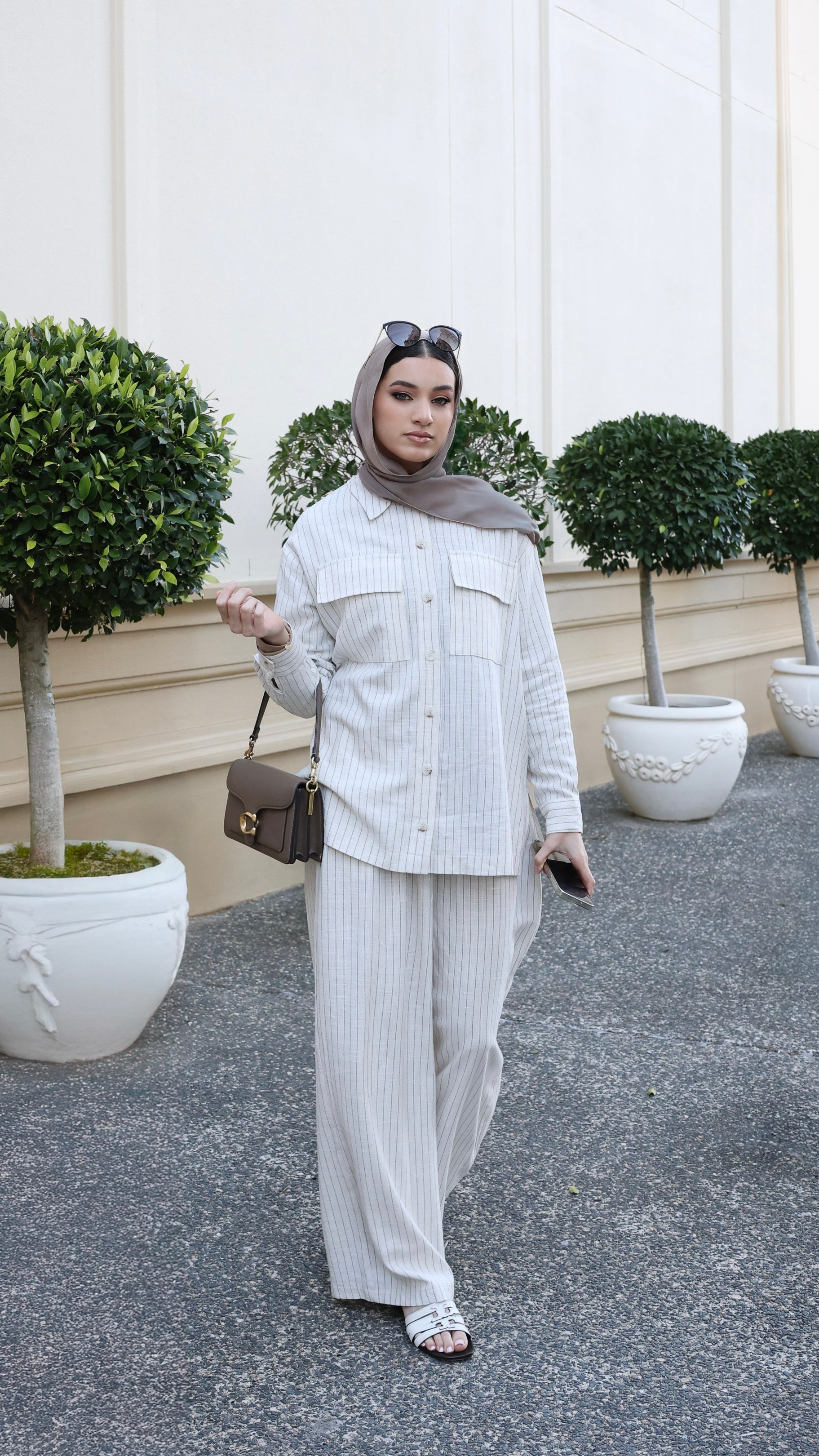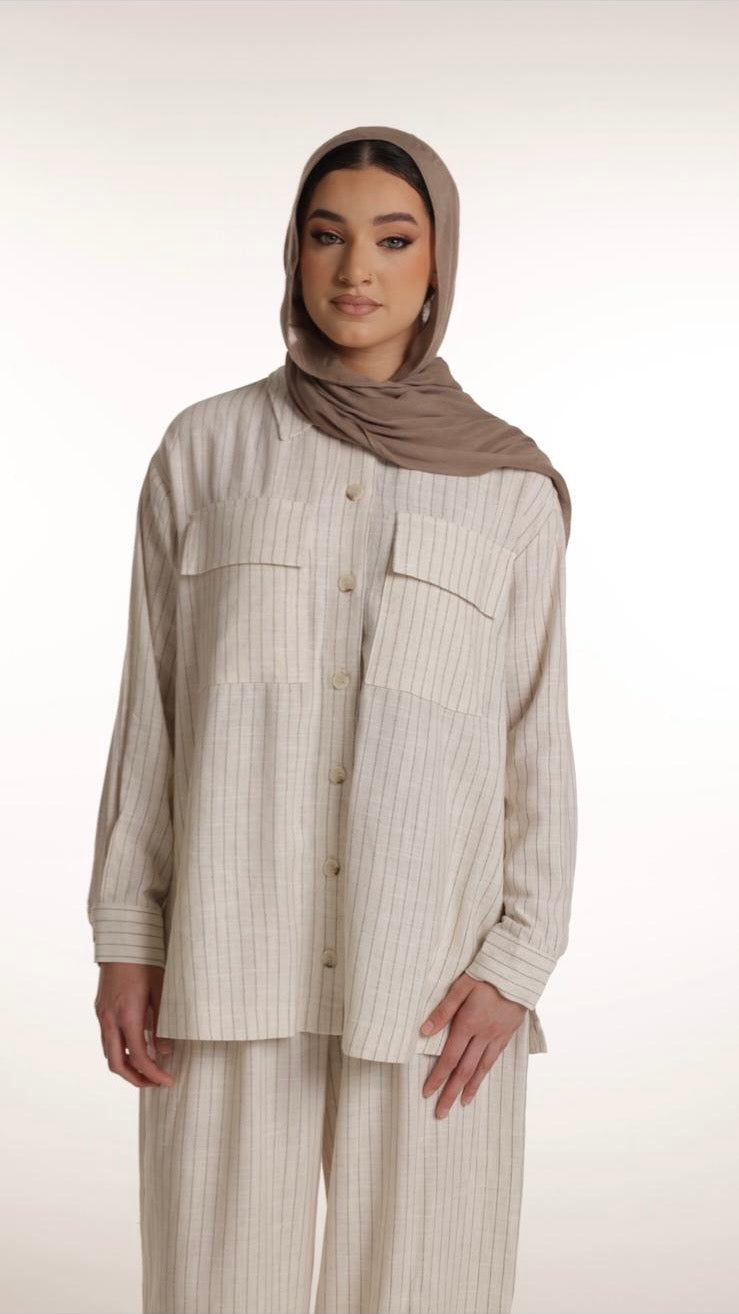 A stylish and comfortable set featuring a relaxed-fit shirt and matching trousers made from high-quality fabric with subtle stripes for a refined yet effortless look. Both pieces can be worn together for a coordinated outfit or styled separately with ease. The lightweight and soft material makes it perfect for warm and mild weather.