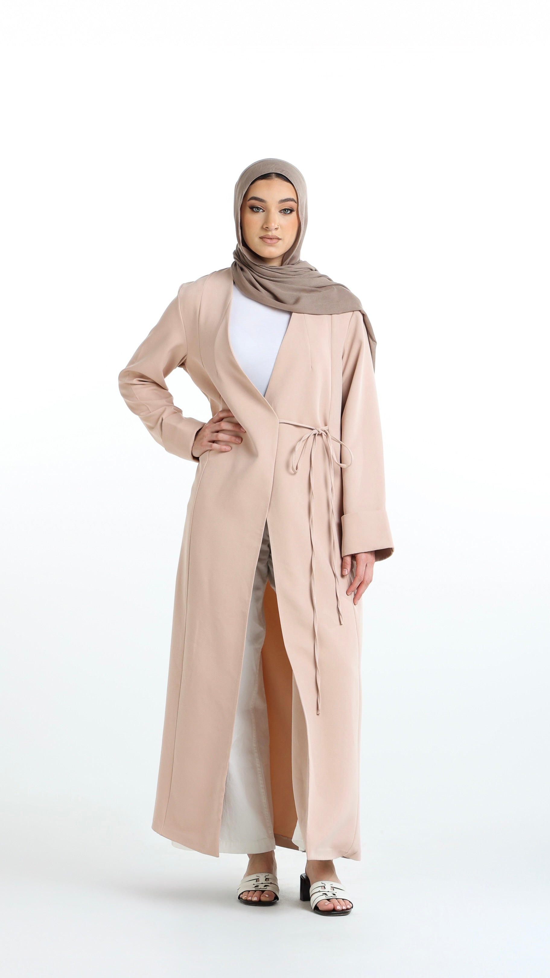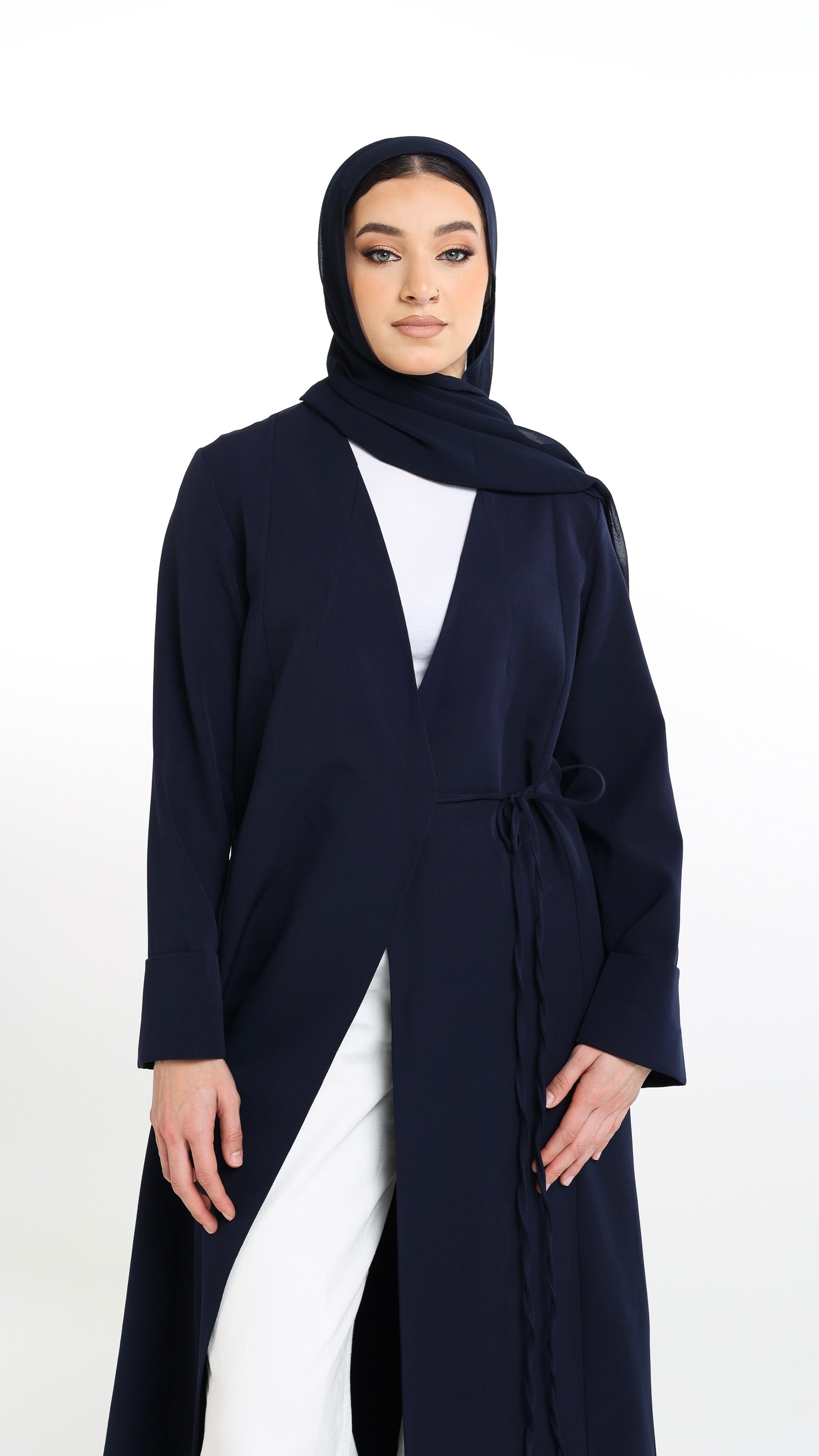 Introducing our elegant long abaya, designed for both special occasions and everyday wear. Featuring a fixed belt for a refined and graceful look, it offers the perfect blend of comfort and sophistication.