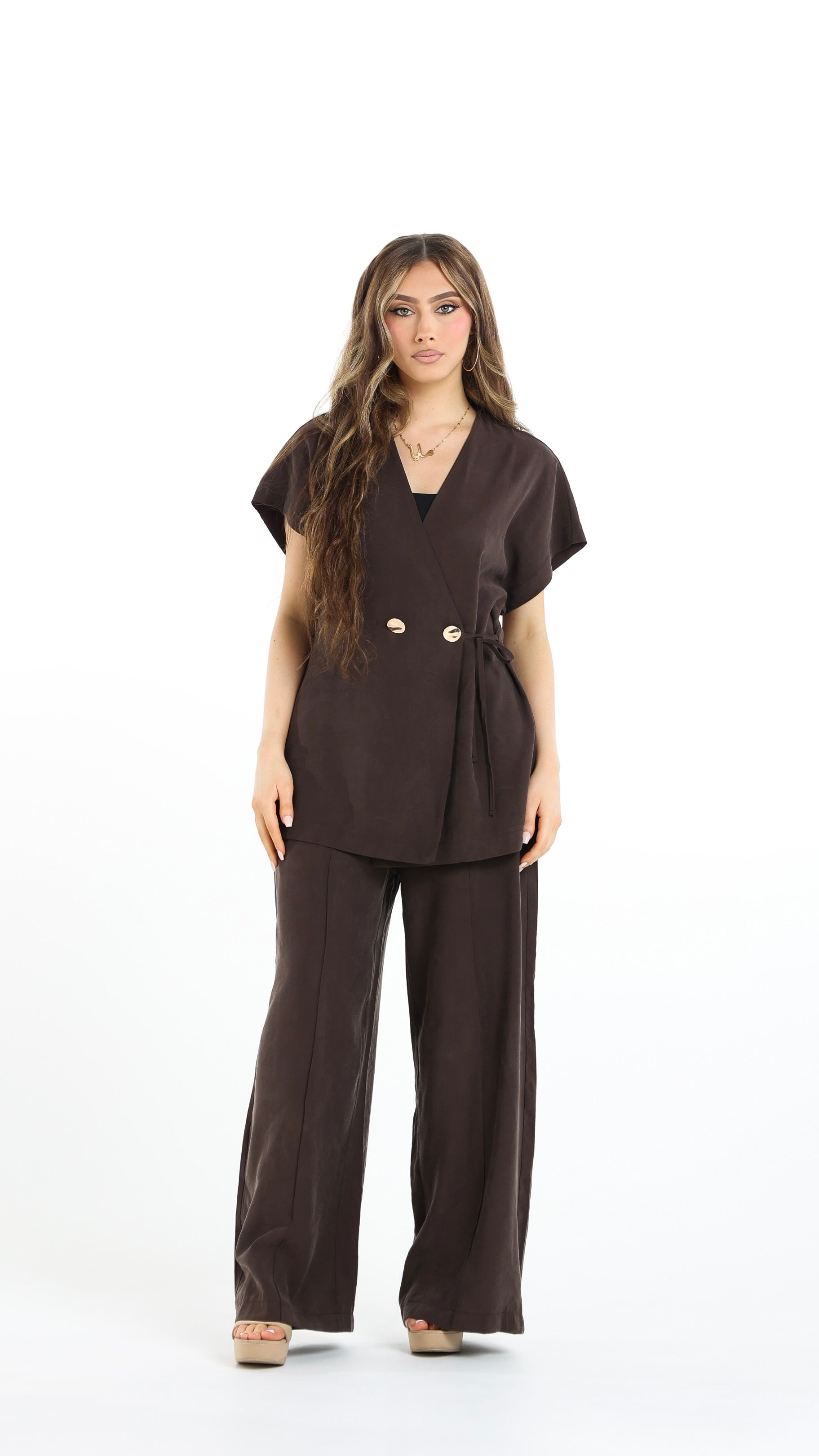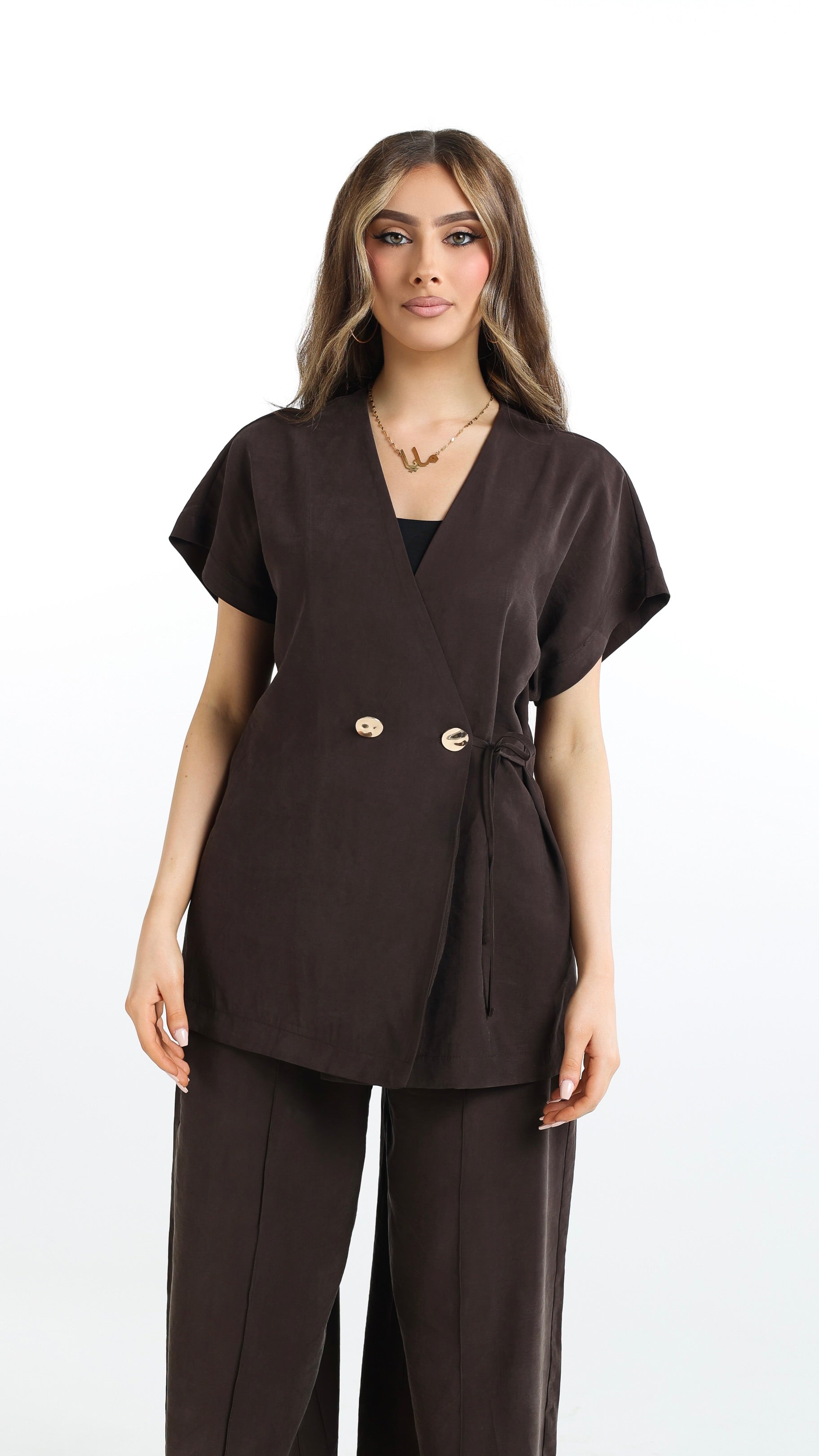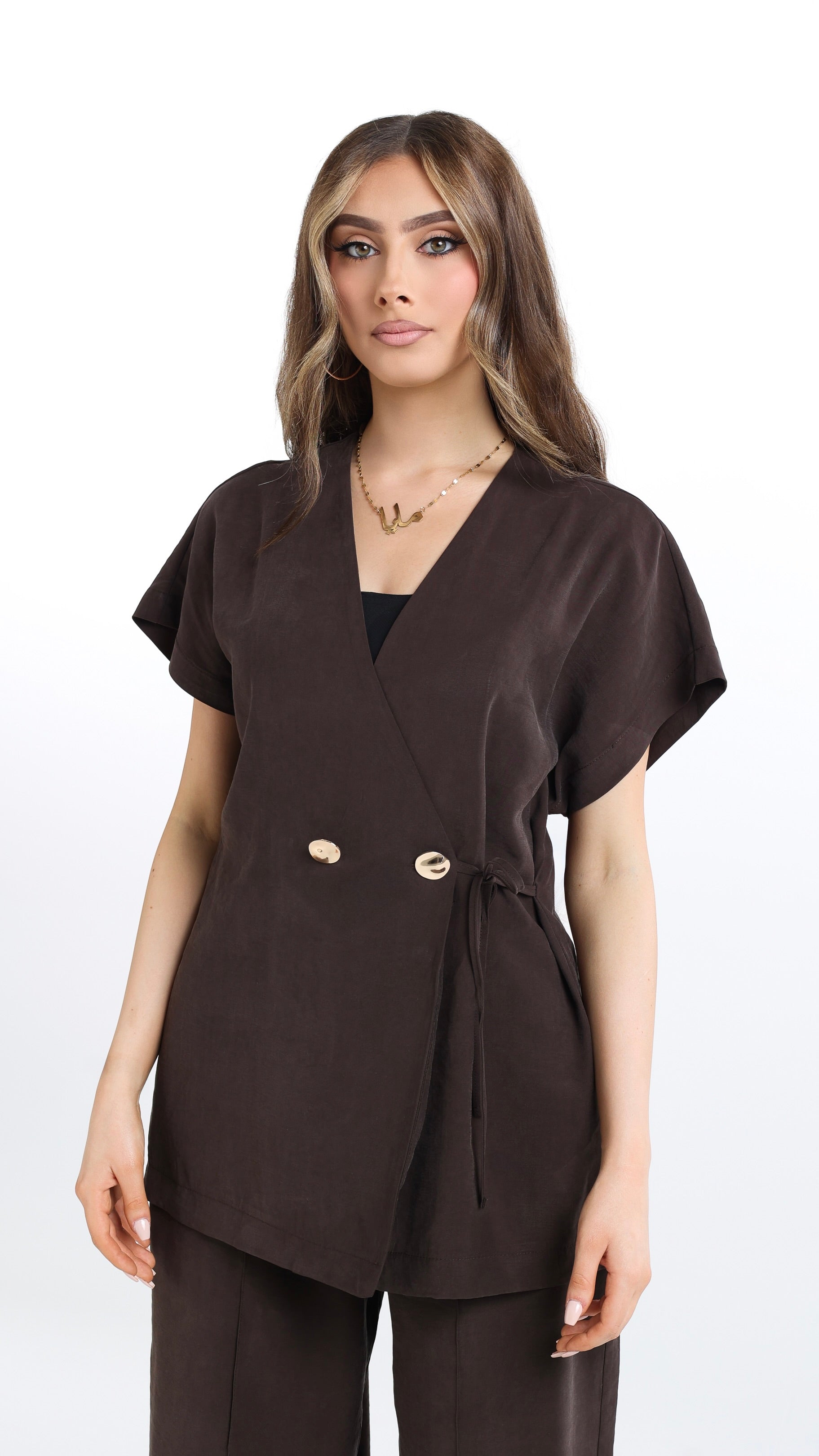 This elegant two-piece set is designed to suit both hijabi and non-hijabi women. Made from soft, lightweight, and cool fabric, it offers all-day comfort while keeping you effortlessly stylish. The relaxed fit and wrap-style top with button details add a touch of sophistication — perfect for casual outings or chic everyday wear.